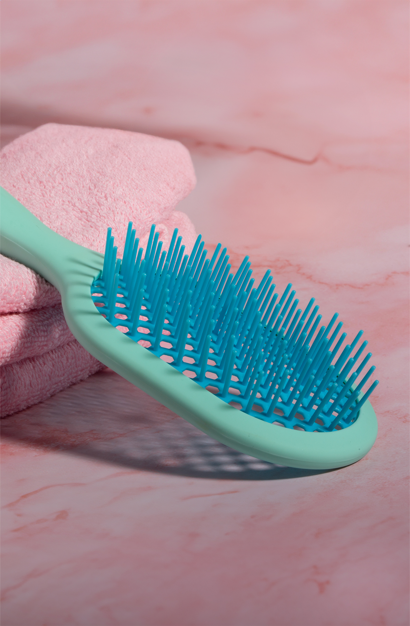 Le setole antistatiche districano senza spezzare e combattono l’effetto crespo, mentre l’impugnatura soft touch vellutata è una vera coccola per le mani.