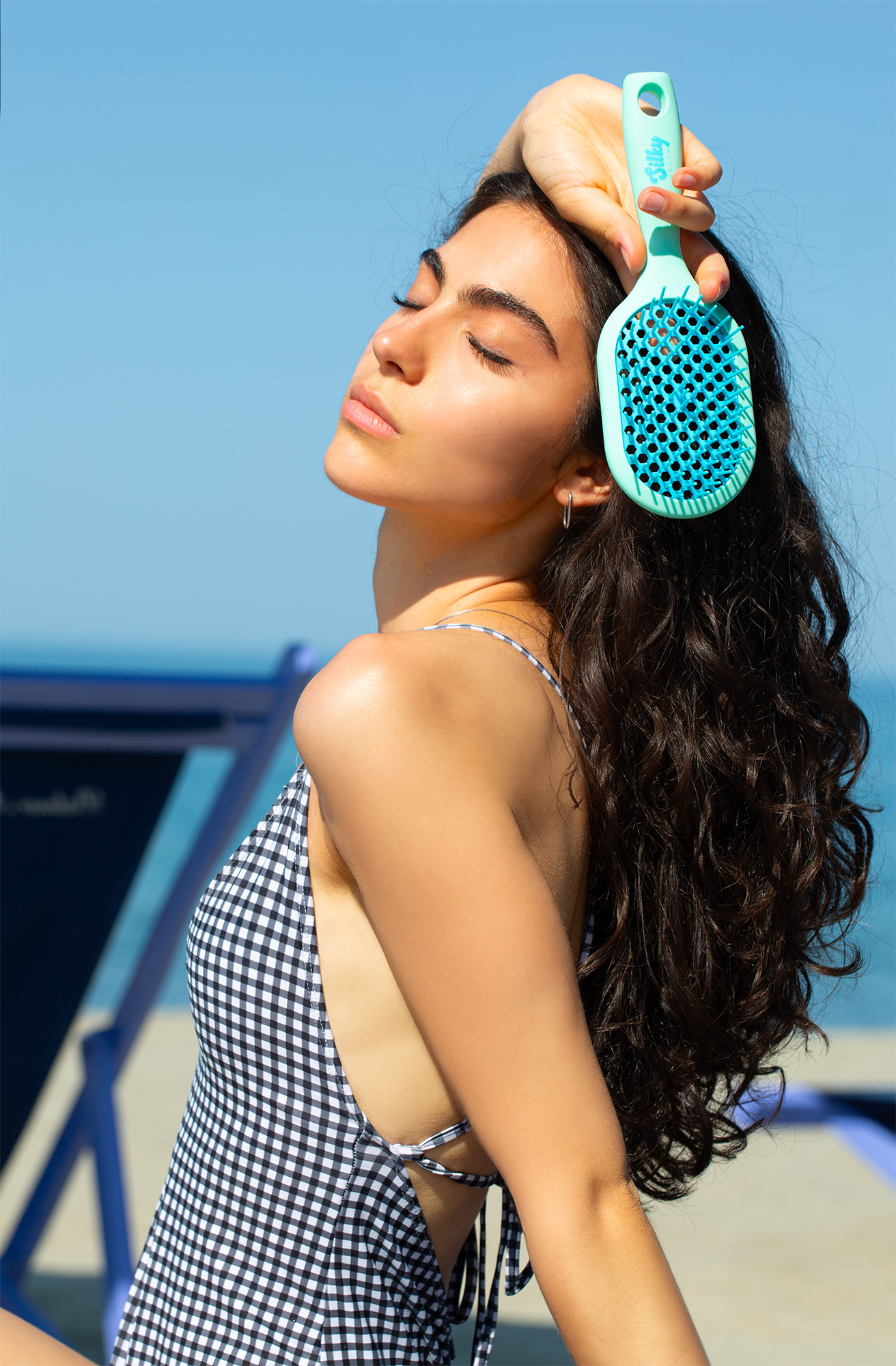 Ideale per tutti i tipi di capelli: lisci, mossi, ricci, fini o trattati. Perfetta sia per l’uso quotidiano che per essere portata in viaggio o in palestra.